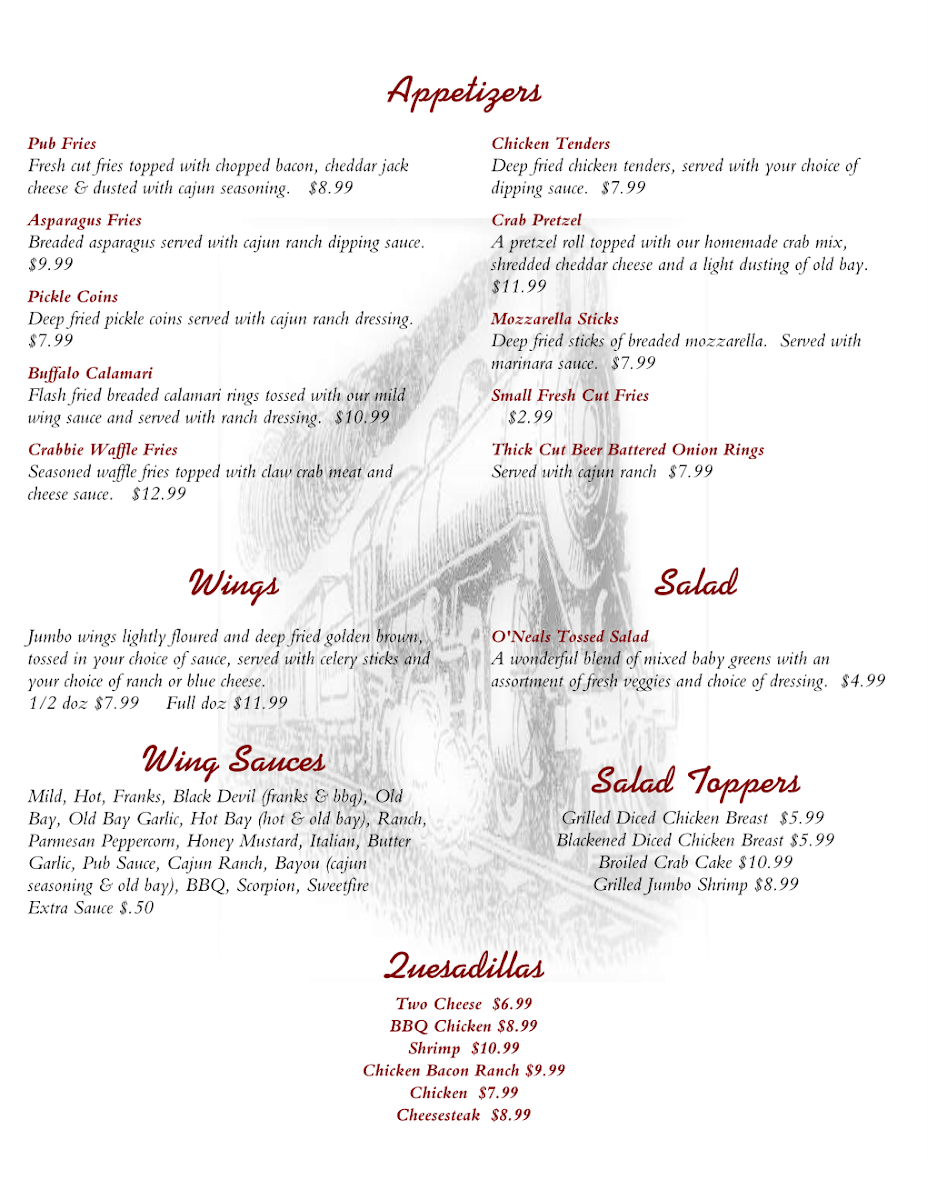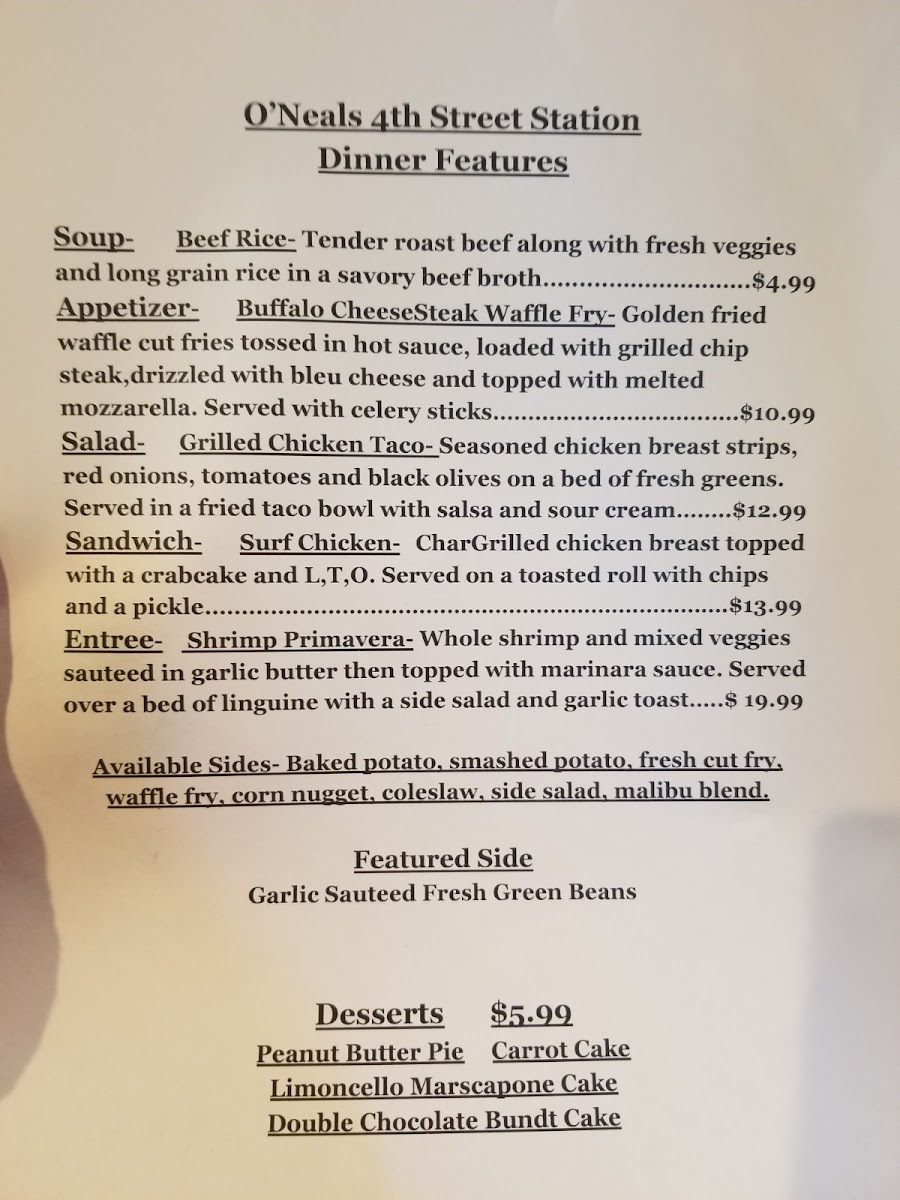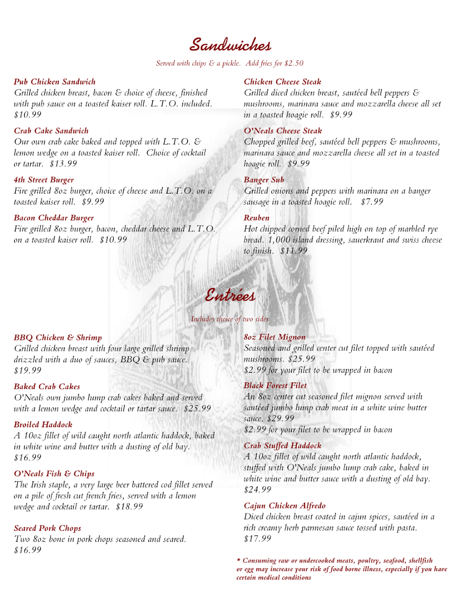 O’Neals 4th Street Station Pub Menu (2025 Update)